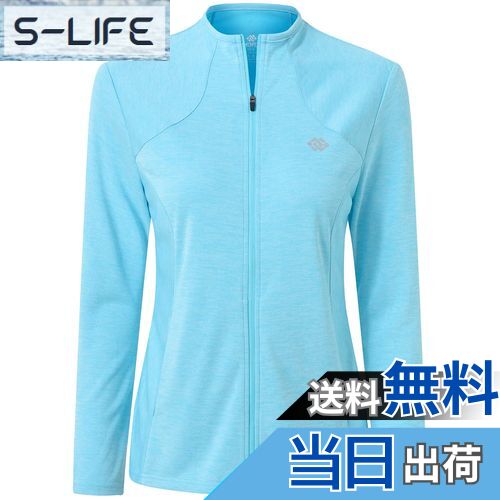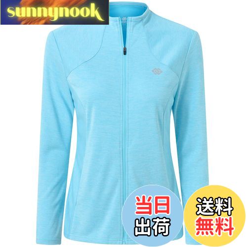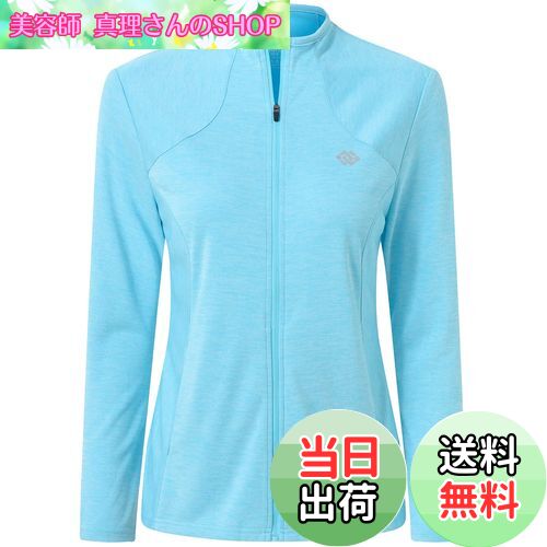 - 【送料無料】[MoFiz] スポーツジャケット レディース ゴルフウェア UVカット UPF50+ 長袖 接触冷感 吸汗速乾 ストレッチ 上着 軽量 日焼け対策 アウトドア ランニング スポーツウェア 登山 無地 夏秋 大きいサイズ 色:ライトブルー、サイズ:L